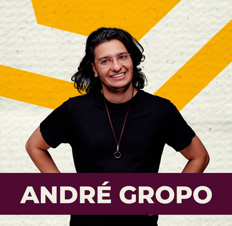 Criador de vídeos virais e altamente engajados, André Gropo se destaca pela criatividade e pelo humor imprevisível. Seus roteiros surpreendentes e inteligentes conquistaram uma presença digital sólida, com um estilo único que mistura caos, lógica torta e muita originalidade. No palco, com seu solo "Mesmo se Ninguém Vier", leva esse mesmo universo maluco da internet, entregando um show tão instigante quanto hilário, onde a comédia nasce das ideias mais inusitadas que só a mente dele poderia criar.