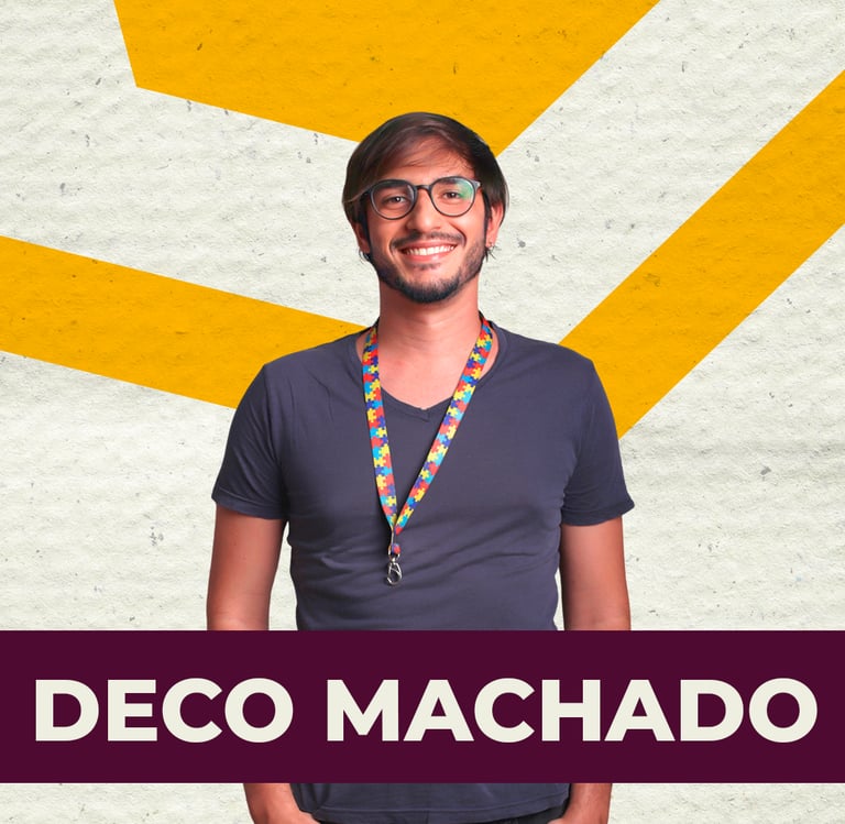 Autista, bissexual e umbandista, Deco Machado transforma suas vivências em shows potentes e necessários. Com um humor sensível e corajoso, ele ocupa o palco com autenticidade e entrega uma comédia que representa, conecta e emociona. Ativo nas causas que representa, Deco também tem grande presença nas redes, levando questionamentos e reflexões através da sua arte. Atualmente em cartaz pelo Brasil com seu solo "Testemunha de Oxalá".