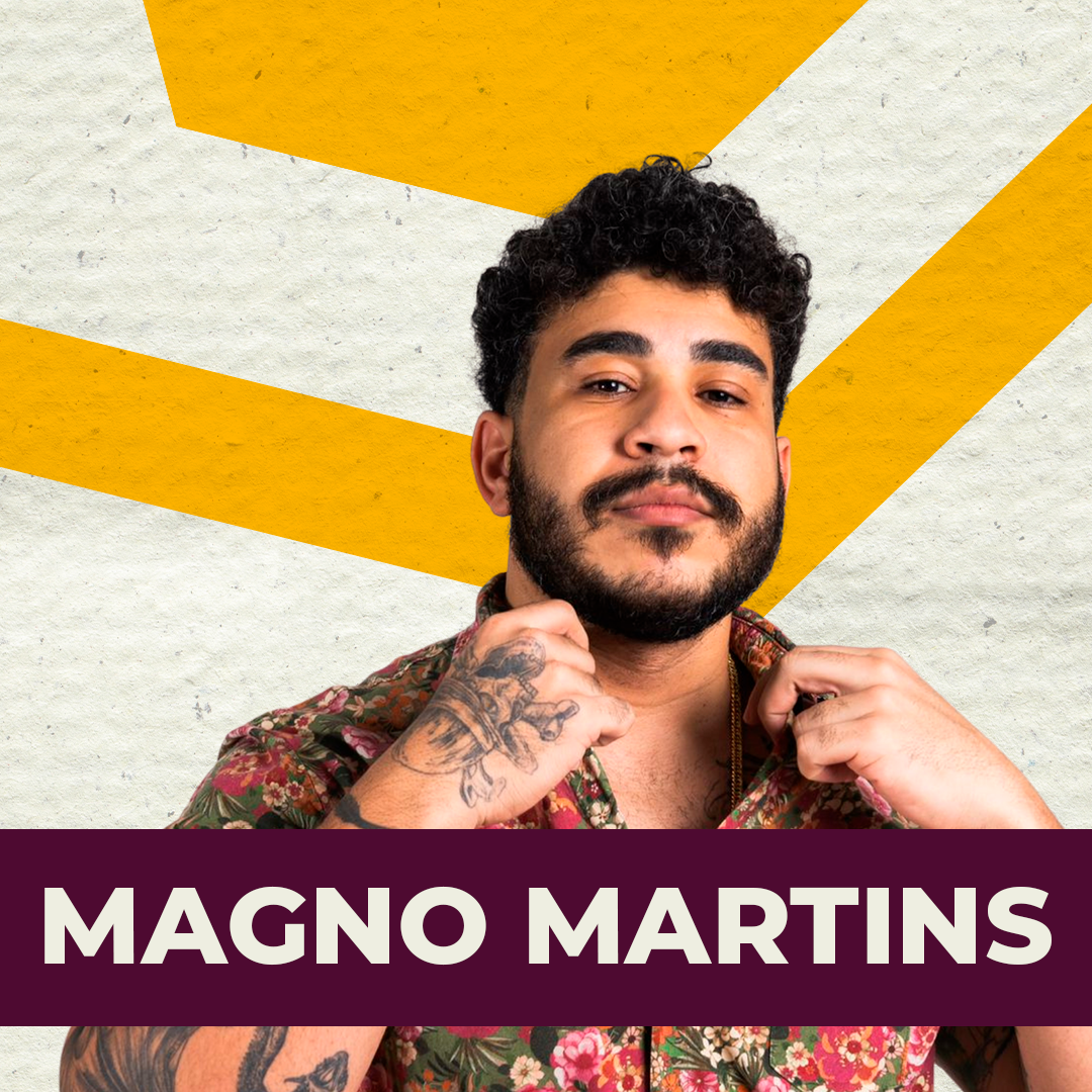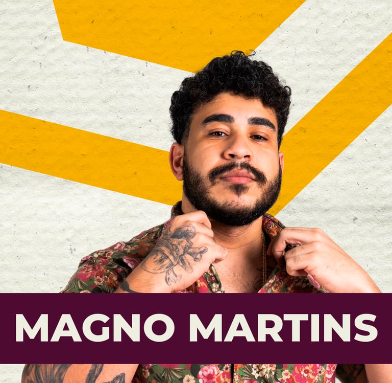 Magno Martins é comediante e roteirista, um dos protagonistas de Conselhos do Machado, atuando como fiel interlocutor do pasto-fantoche. Seu humor utiliza timing preciso e interação com a plateia, sempre conduzindo o show com presença de palco marcante e bastante dinamismo, além de pensamento crítico e ácido em seus textos.