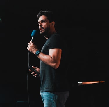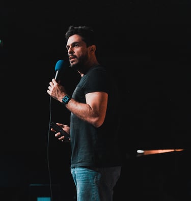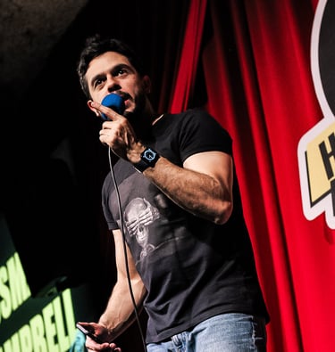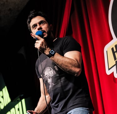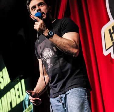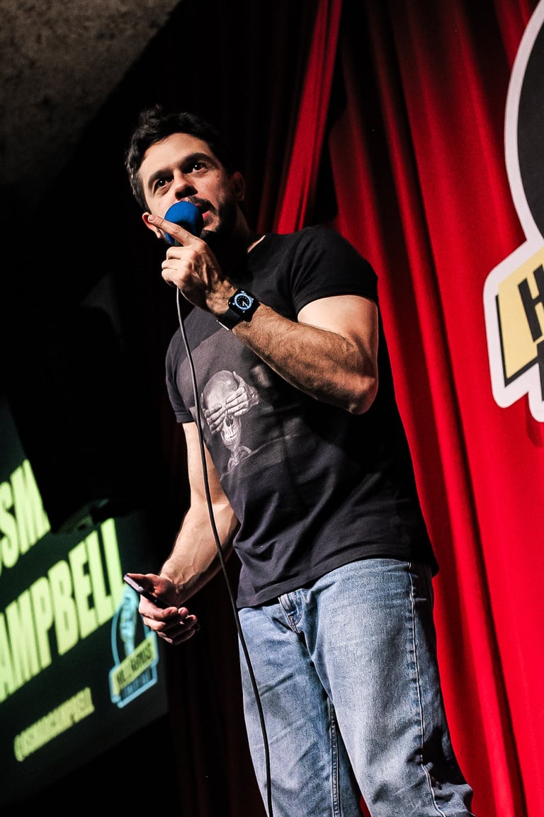 Comediante e um dos fundadores do grupo Em Pé na Rede, Osmar Campbell é conhecido pelo humor afiado e sarcástico. No palco, leva observações sobre relacionamentos e vida adulta com inteligência e ironia. Também é criador do solo "Conselhos Amorosos – Ao Vivo", onde entrega reflexões hilárias (e questionáveis) sobre a vida amorosa, e segue fazendo sucesso nas redes com vídeos que misturam opinião, sarcasmo e muita piada boa.