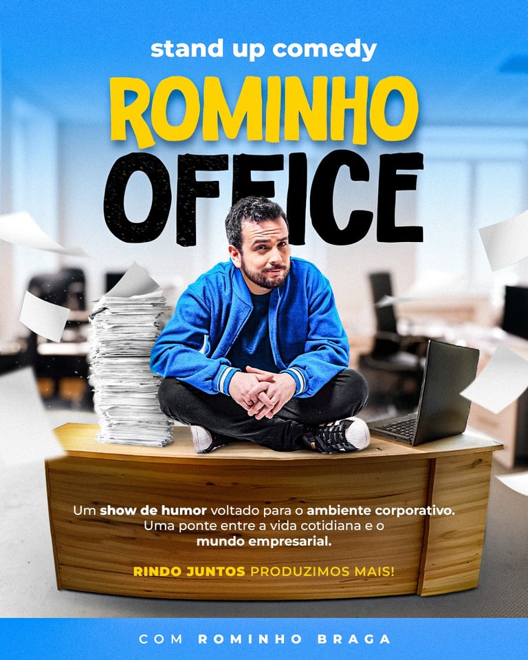 Rominho Braga, comediante e um dos fundadores do grupo Em Pé na Rede, é especialista em transformar as alegrias e peculiaridades da vida a dois em piada. Seu novo solo "Amor e Outras Piadas" gira em torno de relacionamentos, convivência e todas as loucuras que vêm no pacote, sempre com um olhar leve, afiado e muito engraçado. Rominho domina o palco com muita naturalidade e arranca risada de qualquer pessoa — esteja solteira, namorando ou casada há anos. No palco, mistura textos bem construídos com interação com a plateia, criando um show divertido, espontâneo e cheio de identificação. Rominho tem diversos especiais de comédia no Youtube e um especial de comédia com o Em Pé na Rede no Disney+.