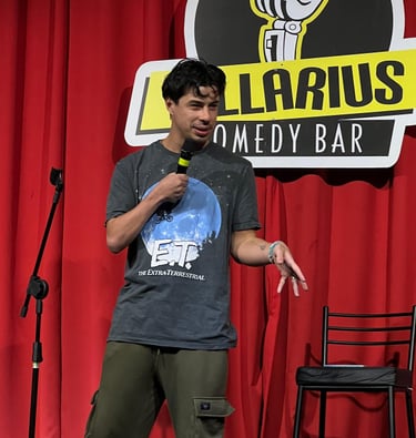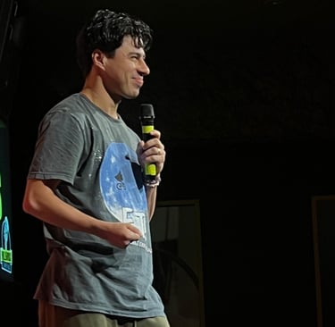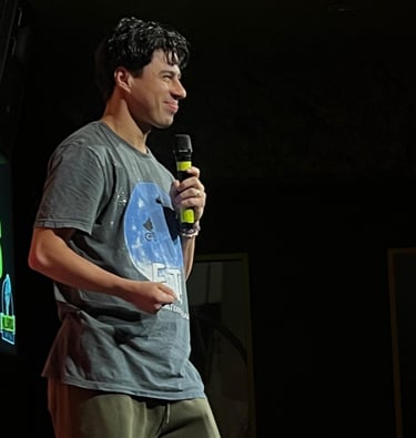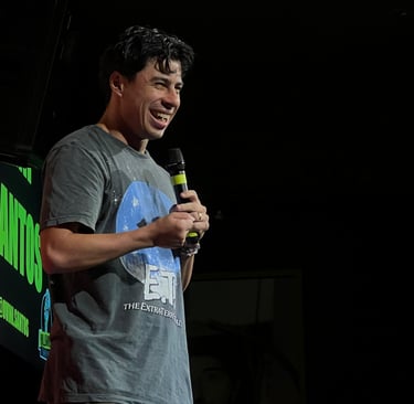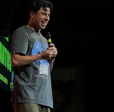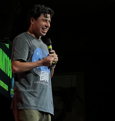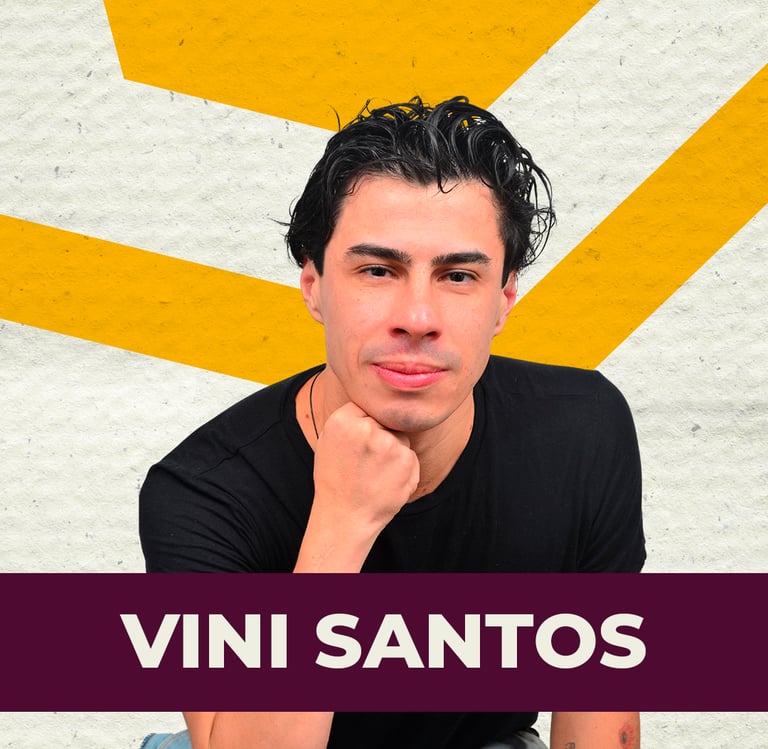 Vini Santos é comediante, roteirista e uma das grandez vozes da comédia stand-up, principalmente quando se fala sobre representatividade. Pessoa com deficiência, ele leva para os palcos e para a internet um humor que provoca, representa e diverte — falando sobre acessibilidade, identidade e o cotidiano com inteligência e carisma. Com textos bem construídos e presença marcante, cria piadas que geram riso e reflexão na mesma medida, sempre com originalidade e uma entrega única.